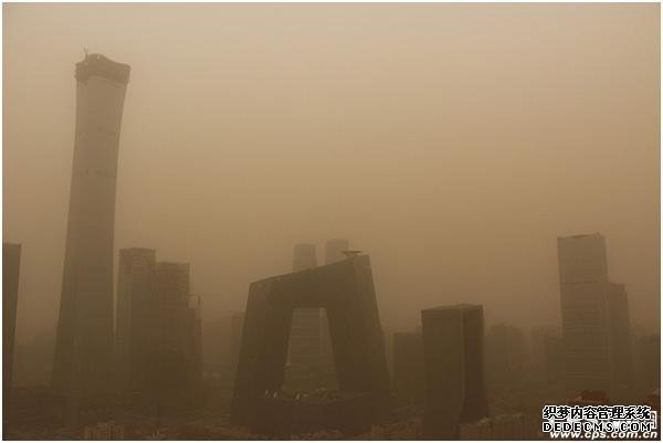 如圖所示,這是28日北京朝陽CBD核心區(qū)的實(shí)拍圖。在PM10近2000的情況下,拍攝出來的照片好像加了一層復(fù)古濾鏡,帶著斑駁的歲月痕跡,覆著厚重的歷史風(fēng)沙,也遮住了攝像頭的追蹤。